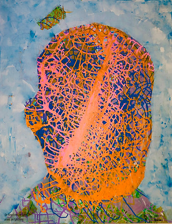 Die Werke Ro de Wals verwandeln, halten nicht fest – sondern erfassen die Welt, in der der Mensch sich aufzulösen scheint, ein Spiel zwischen allgemeiner Lesbarkeit und jenem Moment, der uns unerwartet trifft. Filigrane Netze ziehen sich über und durch die Werke von Ro de Wals, pulsierend wie Nervenbahnen, wie Datenströme, die nicht mehr nur durch den Raum, sondern durch den Menschen selbst fließen. Die Figuren tauchen auf, bleiben fragmentiert, verlieren sich im Geflecht – nicht mehr als vollständige Wesen, sondern als Spuren, als Umrisse, als Überreste der Individualität. Was hier sichtbar wird, ist eine Verschiebung: Der Mensch ist nicht länger Subjekt, sondern wird Teil einer Struktur, einer Ordnung, die ihn nicht mehr als Einzelnen erkennt, sondern nur noch als Funktion. Arme, Gesichter, Körperfragmente – sie scheinen noch zu existieren, doch ihre Präsenz ist brüchig. Sie gehören einer Welt an, in der Identität nicht mehr in sich ruht, sondern verarbeitet, analysiert, vernetzt und dupliziert wird.